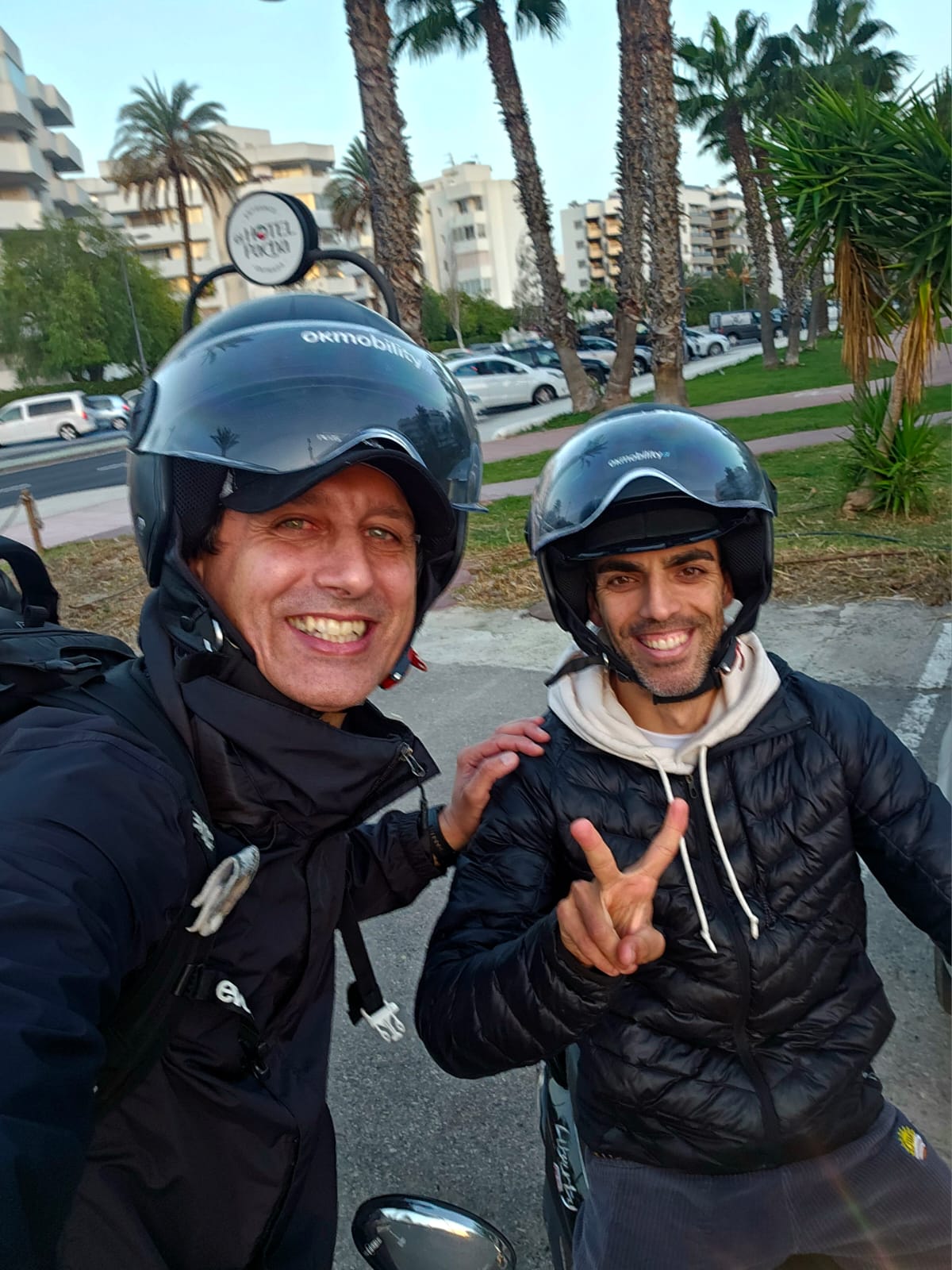 Tras el merecido descanso (que dura es la vida del atleta), bajo a un super a comprar 4 cosas para mañana. (Pan bimbo, Nutella, alguna cosita que me falta…) y me encuentro con nuestro amigo portugués, el fotógrafo Matías Novo, el cuál llega tarde al arranque del equipo media en la prueba … me toca acercarlo al centro para que el pobrecito, no camine … va cargado hasta la azotea (mochila, cámara…) XD XD … el vídeo no tiene desperdicio…